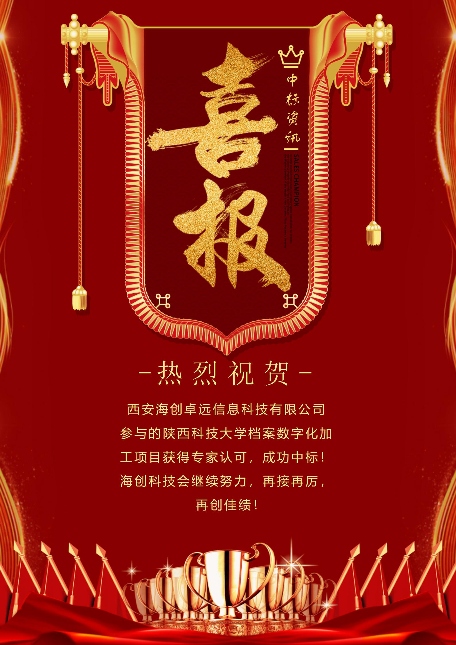 西安海創(chuàng)卓遠信息科技有限公司本著誠信鑄就品質(zhì)、創(chuàng)新引領未來的經(jīng)營理念,以豐富的經(jīng)驗和精湛的技術,在參與的陜西科技大學檔案數(shù)字化項目中獲得專家認可,成功中標!